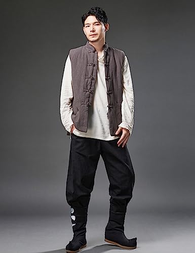 Ystylee Men's Winter Warm Outdoor Padded Vest Thick Quilted Chinese Tang Suit Sleeveless Jacket Outwear 4