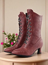 More information about Women's 1920s Victorian Lace-Up Mid Heel Boots - White Vintage Steampunk Ankle Boots for Costume, Historical Reenactments and Gatsby Events