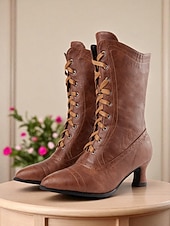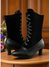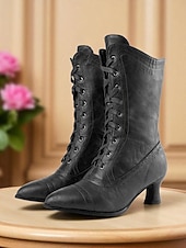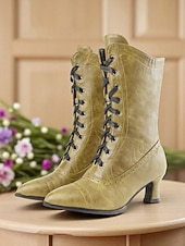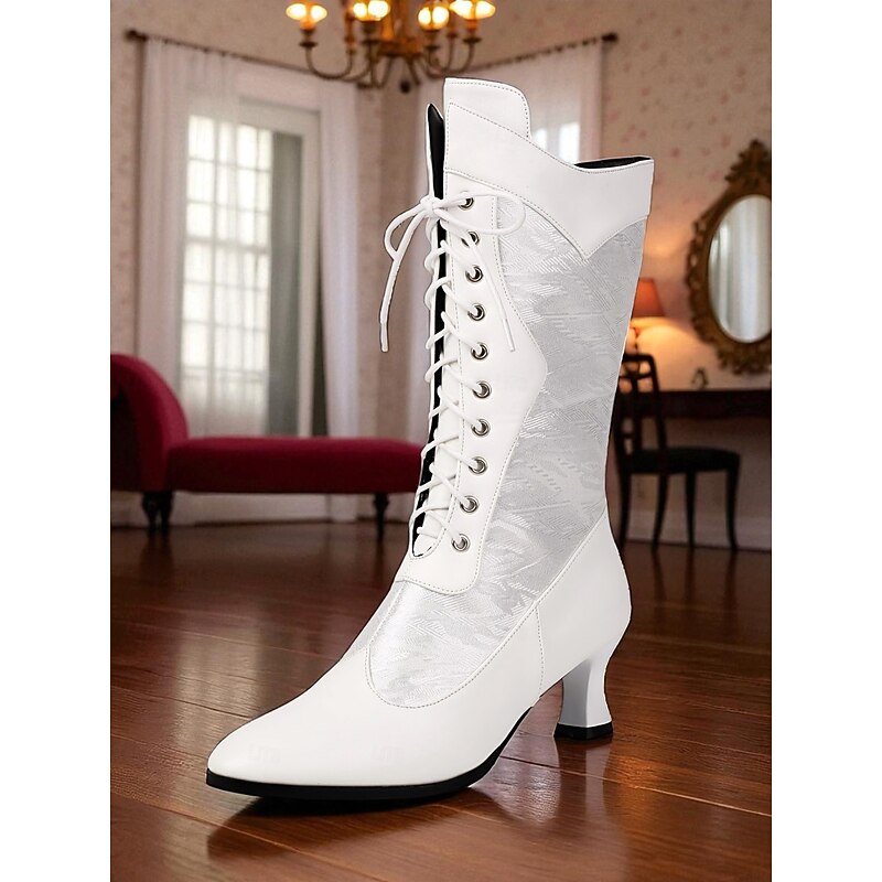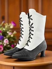 HOT ! Women's 1920s Victorian Lace-Up Mid Heel Boots - White Vintage Steampunk Ankle Boots for Costume, Historical Reenactments and Gatsby Events