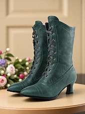 Women's 1920s Victorian Lace-Up Mid Heel Boots - White Vintage Steampunk Ankle Boots for Costume, Historical Reenactments and Gatsby Events 17