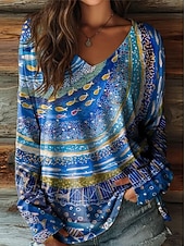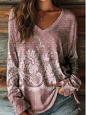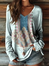 More information about Women's T Shirt Floral Graphic Plants Vintage Stylish Casual Long Sleeve V Neck Regular Tops Daily Weekend Print Pink Blue Gray Light Blue Summer Spring Fall