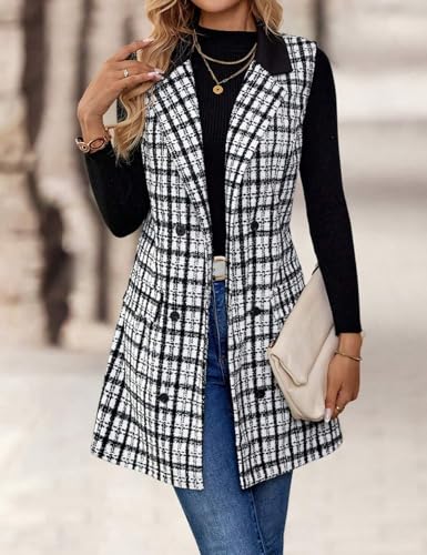 • Style: Casual plaid tweed long vest fall fashion outfits business office work clothes dressy sleeveless blazer jackets vest tops