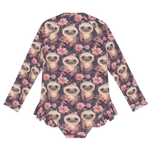 ALAZA Cute Monkey Blossom Flower Girls One Piece Swimsuit Long Sleeve Rash Guard Swimsuits UV 50+ Swimwear Zipper 1