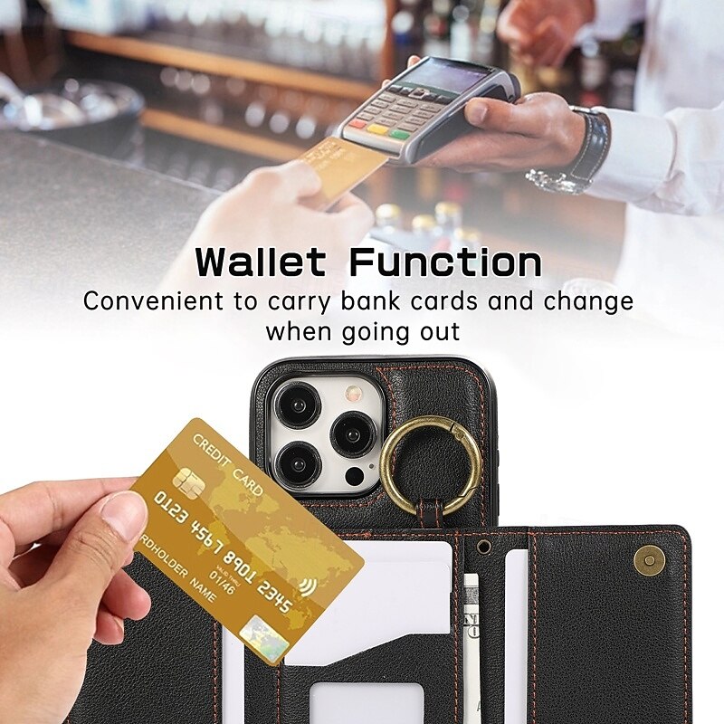 More information about Phone Case For iPhone 17 Pro Max 17 Air 16 15 14 Pro Max Plus 13 12 11 Pro Max Mini Back Cover with Stand Holder Ring Holder Zipper Retro TPU PU Leather