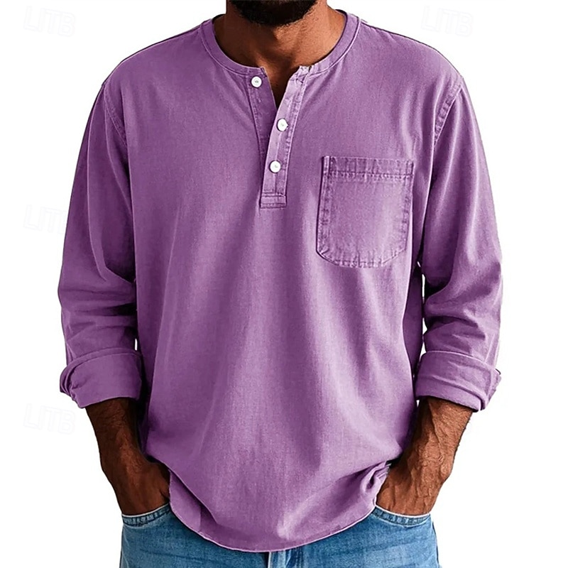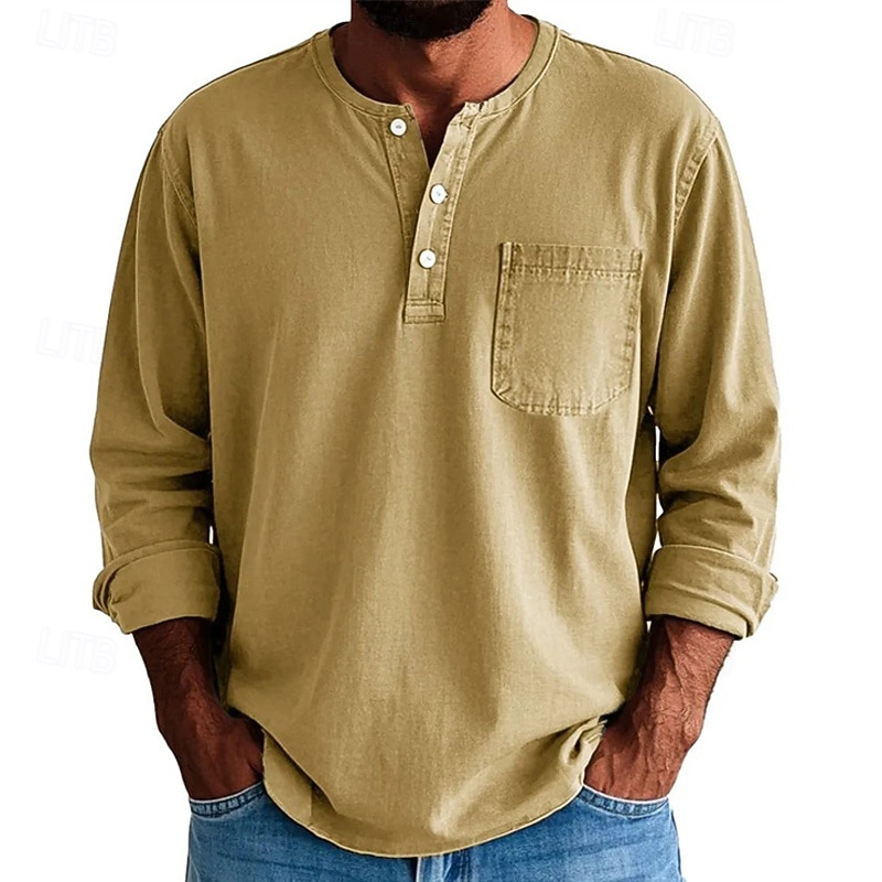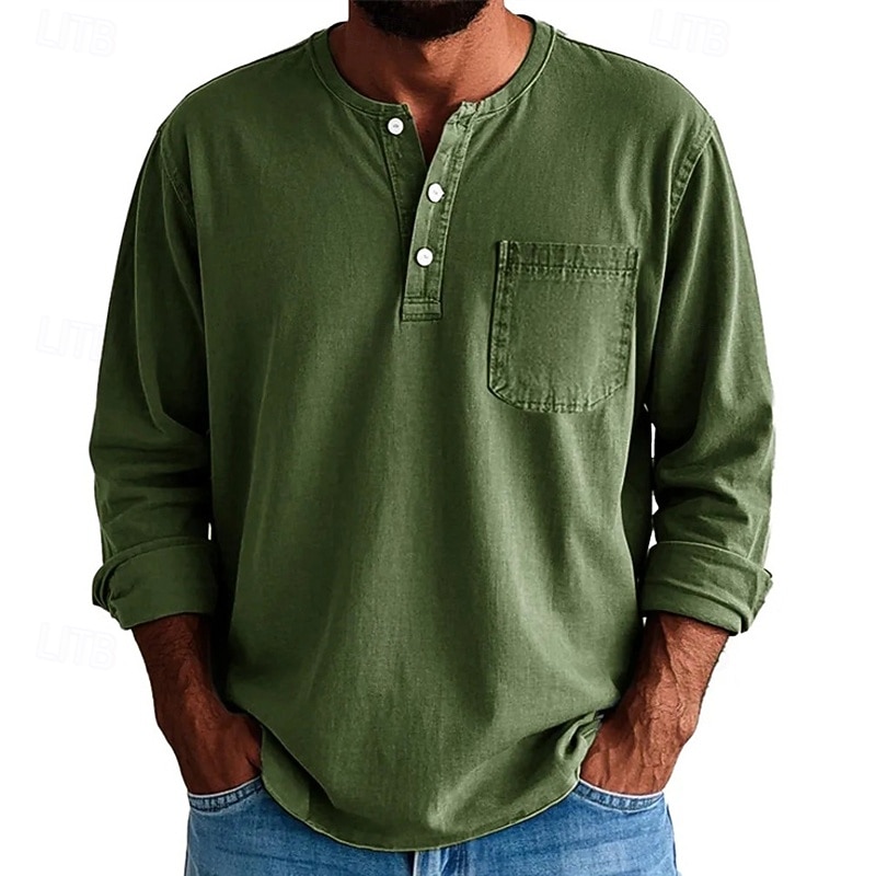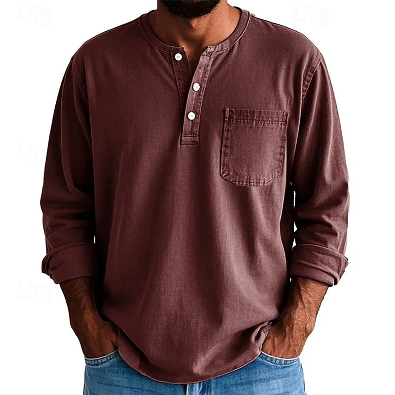 Highlights - Versatile henley shirt perfect for spring and fall seasons - Made from comfortable polyester fabric - Long sleeves for added warmth - Suitable for men - Basic style suitable for any occasion, especially vacations