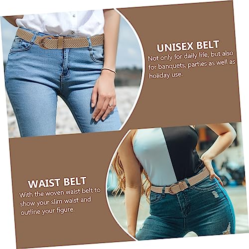 Stylish Elastic Woven Waist Belt for Men and Women Durable Braided Fabric Strap Stretchy Beige Clothes Belt for Jeans Dresses Sweaters Lightweight and Non Fading Accessory 3