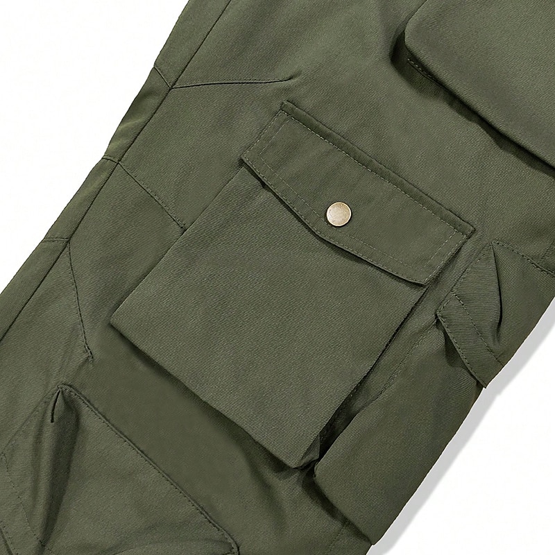 Highlights [Fabric and Comfort]: Crafted from 100% durable cotton, these men's cargo pants offer both comfort and breathability, making them ideal for spring and summer wear. The sturdy fabric ensures longevity, perfect for daily use and various outdoor activities. [Fit and Style]: Featuring a regular fit, these pants provide a relaxed and comfortable wear. The cargo style is marked by its loose fit, allowing for easy movement throughout your day. The mid-waist design enhances the casual, fashionable appeal, blending effortlessly into any laid-back wardrobe. [Design Highlights]: These pants boast multiple flap pockets on the sides and front, adding a practical and utilitarian touch. The earthy army green color enhances their rugged charm, making them versatile for both city strolls and countryside adventures. The cuffs are designed to fall naturally over shoes, accentuating the casual, outdoor vibe. [Occasions]: Perfect for daily wear, outdoor explorations, and casual outings, these cargo pants are a reliable choice for any man looking to combine utility with style. Whether heading out for a weekend hike or running errands in town, they complement a variety of activities. [Size Range]: Available in sizes S, M, L, XL, 2XL, and 3XL, these cargo pants cater to a wide range of body types, ensuring a comfortable fit for all.