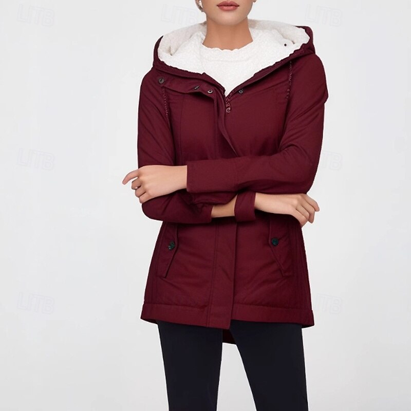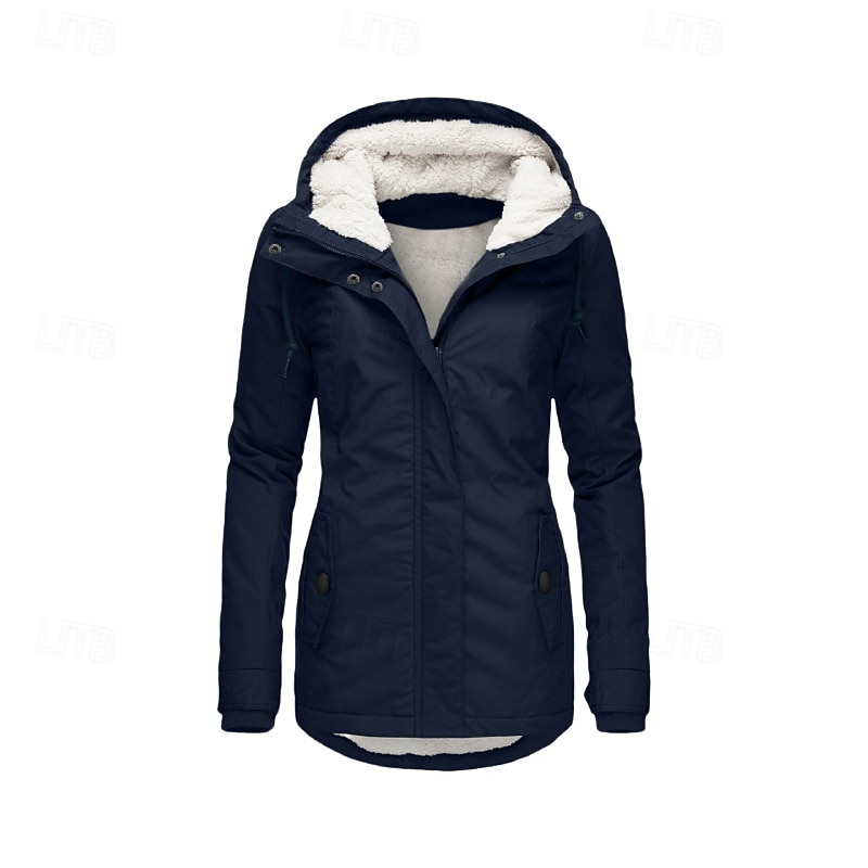 More information about Women's Winter Coat Hoodie Jacket Warm Comfortable Zipper Pocket Casual Plain Outdoor Vacation Daily Wear Weekend Regular Hooded Regular Fit Long Sleeve Outerwear Navy Black Red Fall Winter