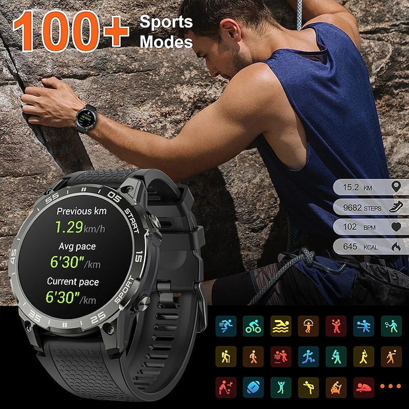 HOT ! Military GPS Smart Watch for Men, 1.43 AMOLED Screen, Heart Rate, IP68 Waterproof, Compatible with Android iOS