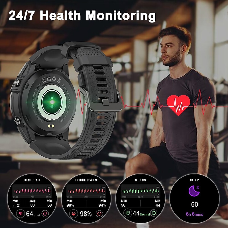 Military GPS Smart Watch for Men, 1.43 AMOLED Screen, Heart Rate, IP68 Waterproof, Compatible with Android iOS 3