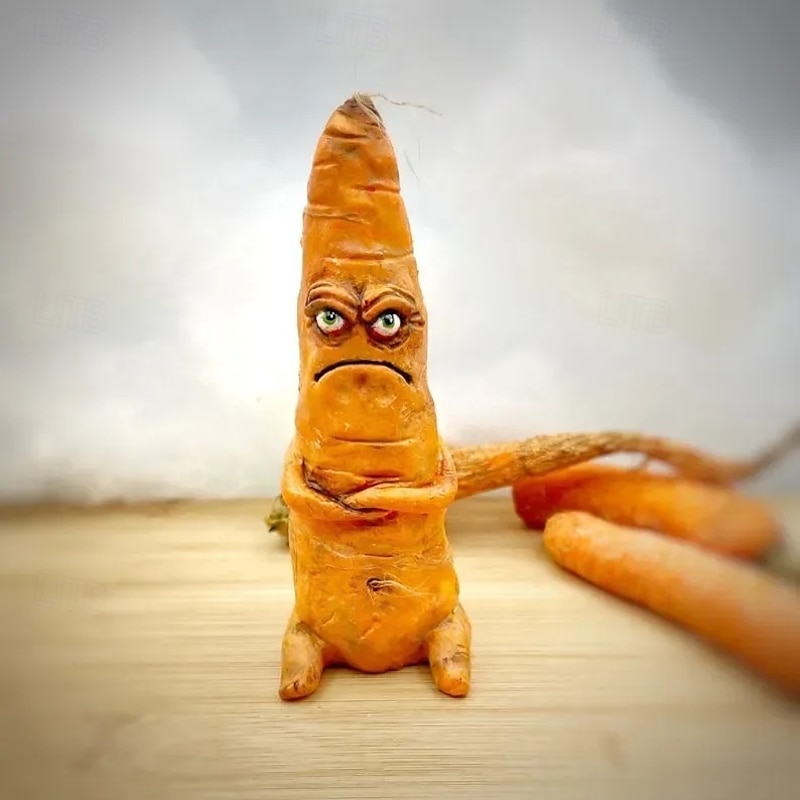 HOT ! Cranky Carrot Figurine, Screaming Pickle, Handmade Cute Emotional Support Celery Broccoli Buddy, Miniature Scare Corn Sculpture for Desk Home Office Decoration