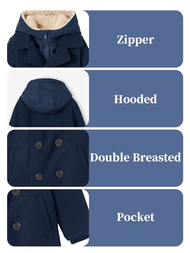 Haloumoning Boys Wool Blend Winter Coat Notched Collar Double Breasted Hooded Pea Coat Warm Outwear 4
