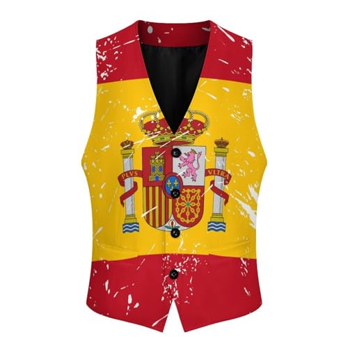 HOT ! Spain Vintage Flag Suit Vest for Men Slim Fit Sleeveless Jacket V Neck Business Waistcoat Button Up Dressy Top