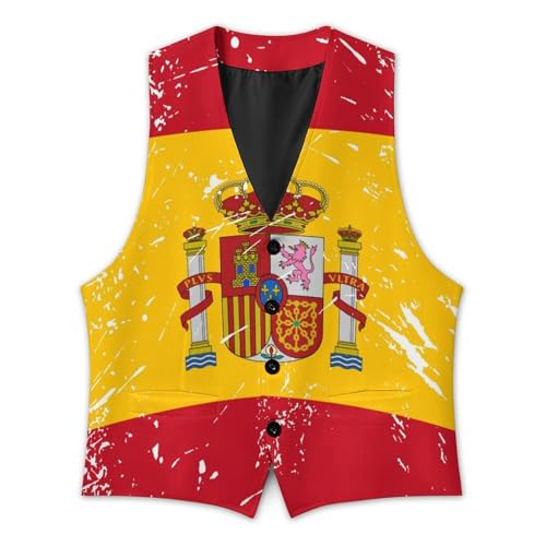 Spain Vintage Flag Suit Vest for Men Slim Fit Sleeveless Jacket V Neck Business Waistcoat Button Up Dressy Top 1