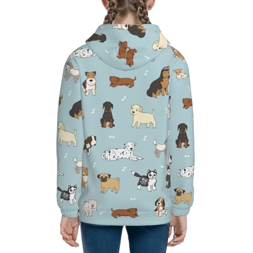 Cartoon Doodle Puppy Kids Pullover Hoodies Boys Zip Up Sweatshirts Girls Athletic Clothes with Pocket 5