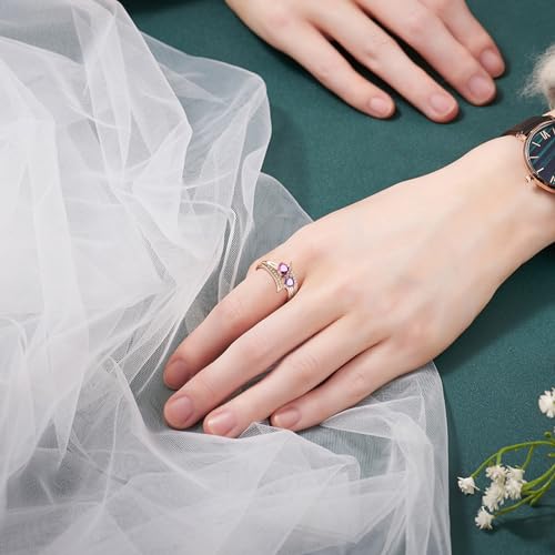 ORFAN Personalized Promise Rings for Her Custom Couples Name Ring for Women Mother Rings with 2 Simulated Birthstones Customized Christmas Gift for Her 5