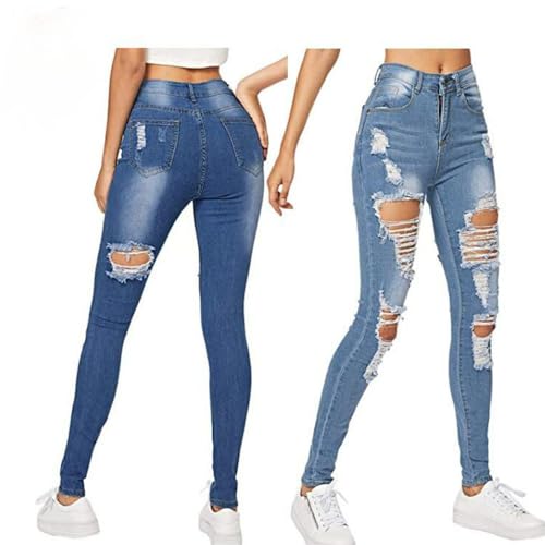 More information about Women's Mid Rise Skinny Stretch Ripped Jeans Mid Waisted Destroyed Sexy Tight Denim Pants
