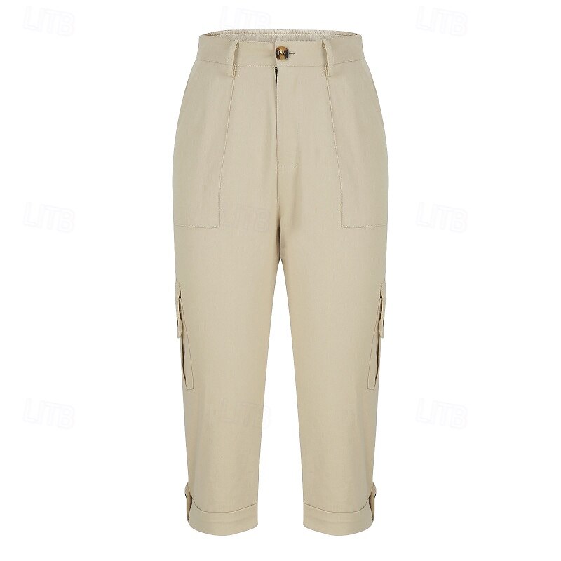 More information about Women's Cargo Pants Capri Pants Slacks Streetwear Casual Full Length Natural Plain Pocket Elastic Waist Comfy Outdoor Vacation Going out claret Dark-Gray Black White Fall Regular Fit