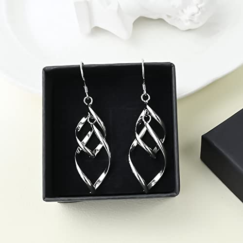 • [Sterling Silver Twist Earrings] Simple but chic. Sterling silver dangle earrings are manual polished by our craftsman. Double linear loops design makes you more elegant and fashion, the smooth silver loops gently swings and glitters on your ear. These simple earrings are light, elegant and durable, and are an great addition to your daily jewelry collection.