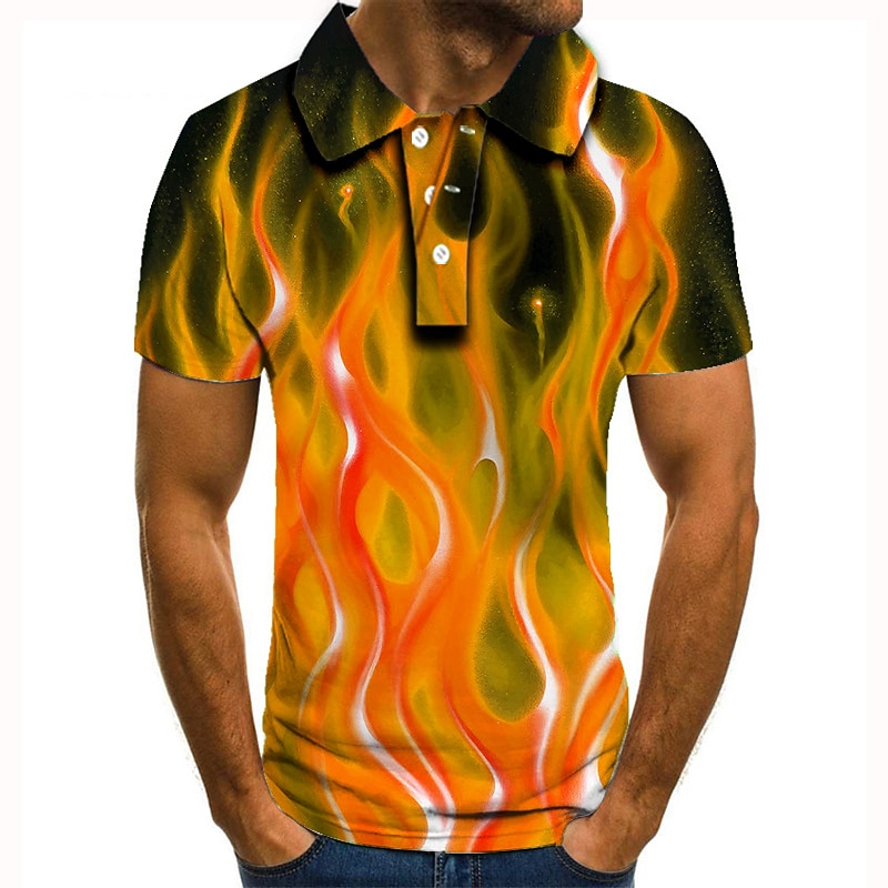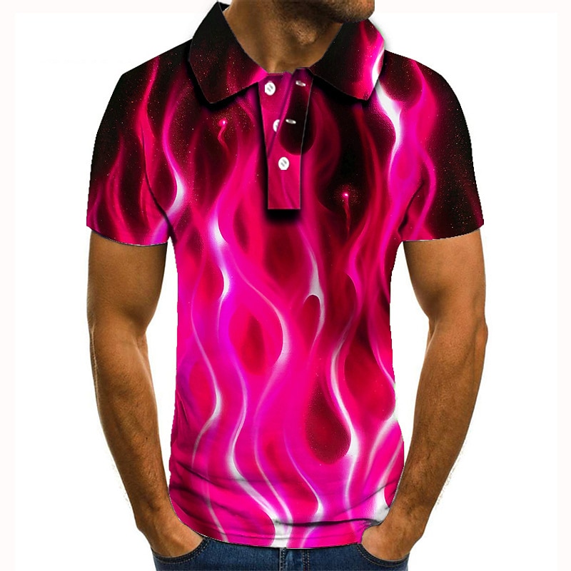 More information about Men's Graphic Polo Shirts Golf Shirt Short Sleeve Polo Shirts Collared Shirts Casual Vacation Wear Rave Wear Party Outfits Buttons 3D Print Yellow Pink Blue