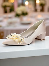 More information about Women's Satin Wedding Shoes - Elegant Pointed Toe Block Heel Pumps with Pearl and Floral Embellishments, Comfortable Formal Bridal and Party Footwear