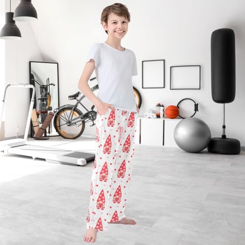 Boy's Pj Pants Valentines Day Red Gnome Heart Lounge Bottoms Elastic Waist Kids Joggers with Pockets Size 6-14 7