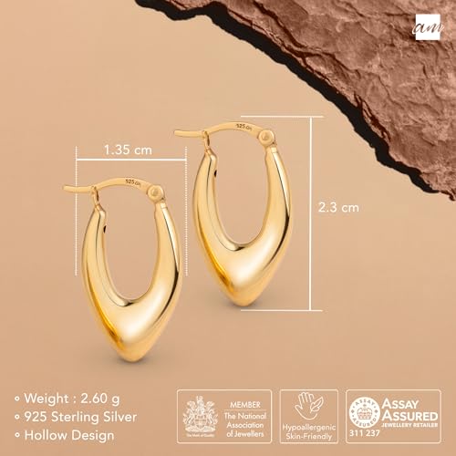 More information about Amberta Solid 925 Sterling Silver Chunky Hoop Earrings for Women | Lightweight Thick Dome Oval Gold Hoops