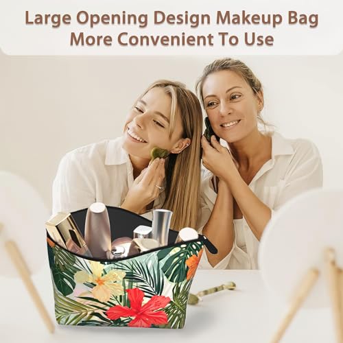 HOT ! Hibiscus Flowers Travel Makeup Bag,Hawaiian Palm Leaf Cosmetic Bags Small Waterproof Zipper Women Purse Mini Portable Traveling Organizer Pouch for Ladies Thanksgiving Gifts