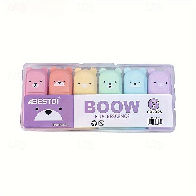 Mini Highlighter Bear Shaped Highlighter Color Marker Ledger Pen Back To School School Supplies Markers 6 PCS/SET 7