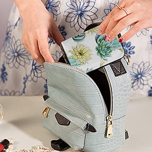 Turquoise Green Cactus Cacti Yellow Flowers on White Credit Card Coin wallet, Key Change Organizer Zipper Purse Compact Clutch Pouch Pocket, RFID Blocking Women Leather Card Holder 6