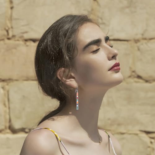 More information about Turquoise Earrings for Women 925 Sterling Silver Gemstones Dangle Earrings Bohemian Style Statement Bar Earrings Dangle Earrings for Women Earrings Valentines Gifts