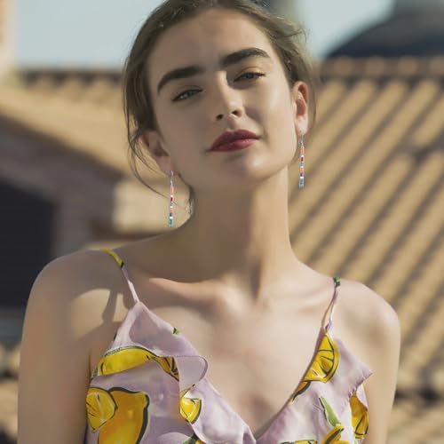 • Exquisite Design: This women's dangle earring features a 43*5.5mm multi gemstones (teal turquoise & spiny turquoise & white mother of pearl & purple turquoise & red coral) pendant with ear hook design, making it a stunning jewelry piece.