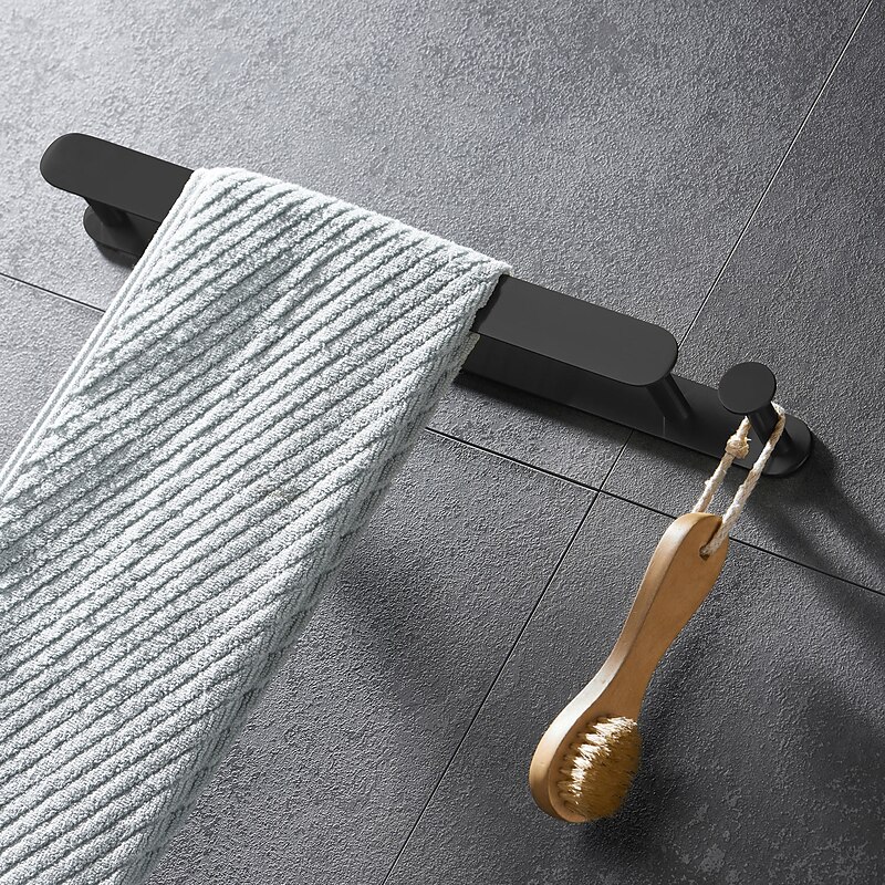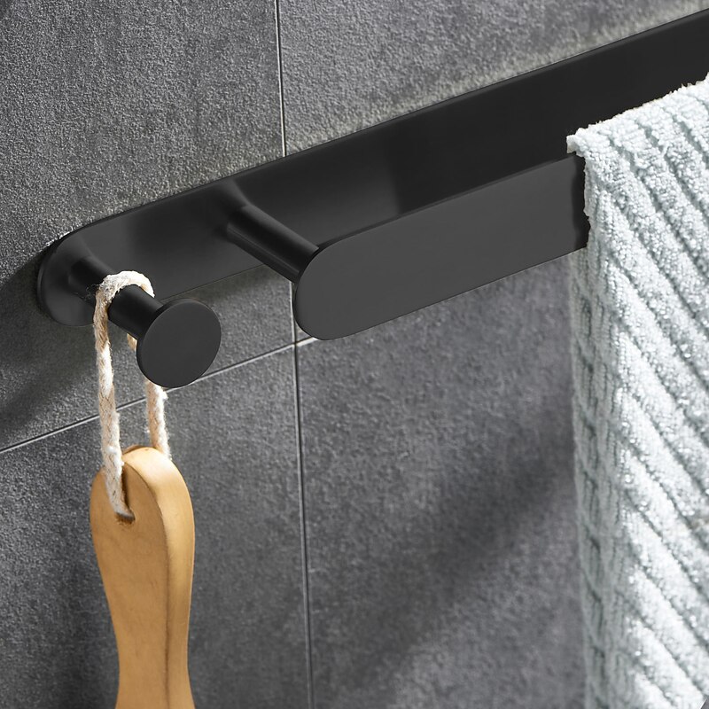 Black Multifunctional Towel Bar with Hook Stainless Steel Painted Finishes Bathroom Shelf Self-adhesive 40cm 1pc 6