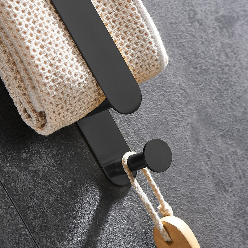 Black Multifunctional Towel Bar with Hook Stainless Steel Painted Finishes Bathroom Shelf Self-adhesive 40cm 1pc 2
