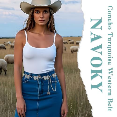Navoky Concho Western Belt Woman Turquoise Cowgirl Waist Chain Silver Country Concert Outfit Body Jewelry Accessories 1