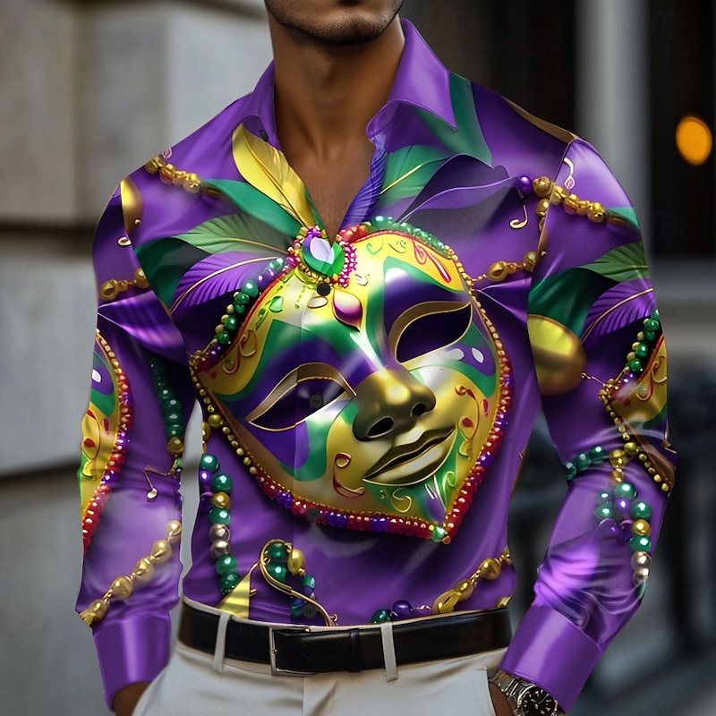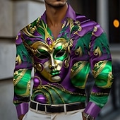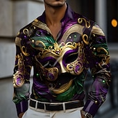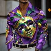 More information about Mardi Gras Men's Mask Carnival Satin Shirt Dress Shirt Button Up Shirt Long Sleeve Fashion Casual Holiday Summer Spring Turndown Collared Shirts 3D Print Light Purple Purple Dark Purple