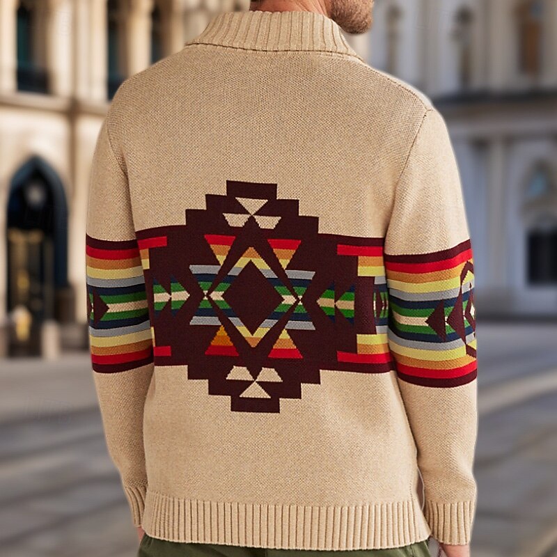 Men's Cardigan Sweater Cropped  Sweater Knit Sweater Ribbed Knit Regular Tops Pocket Buttons Stripe Lapel Fashion Classic Vacation Daily Wear Clothing Apparel Fall Winter khaki M L XL 1