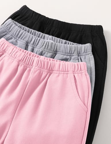 Girls' 3 Pack Sweatpants Kids Cotton Elastic Waisted Joggers Athletic Pants with Pockets 4-12 Years 3