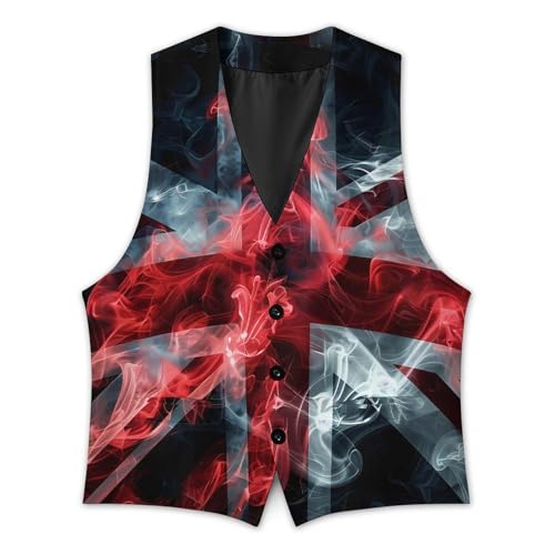 England Smoke Flag Novelty Men's Suit Vest Funny Formal Dress Vests Business Waistcoat 4