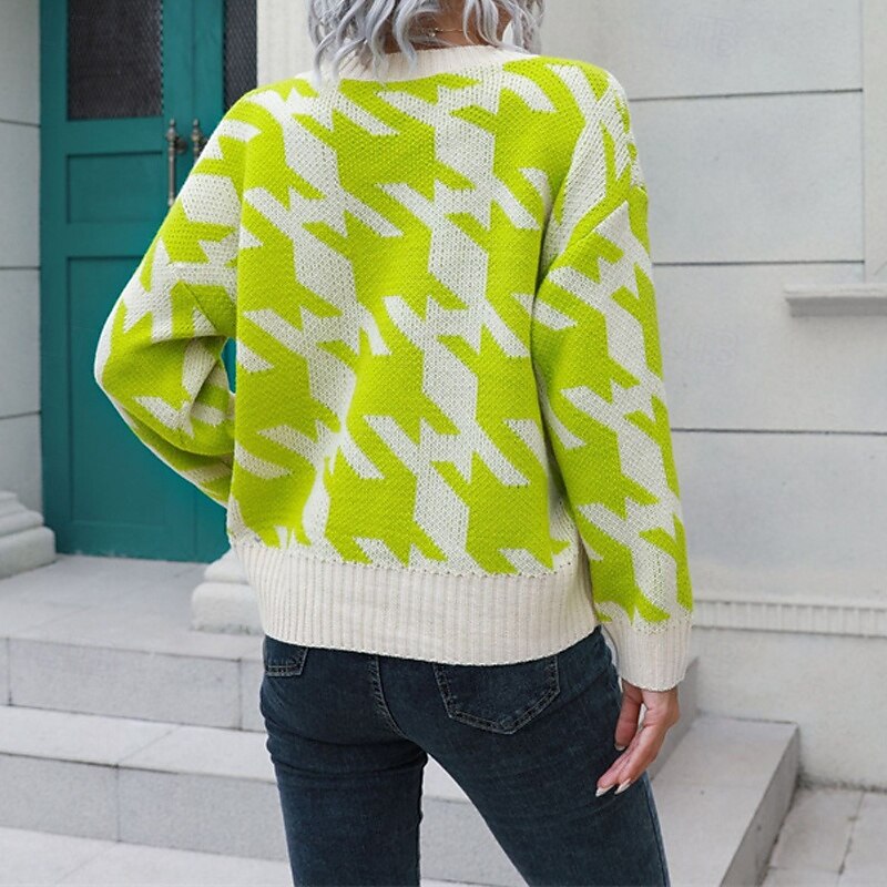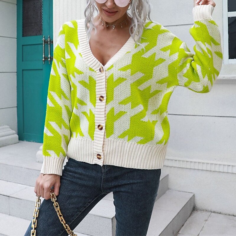 More information about Women's Cardigan Casual Houndstooth Chunky Turtleneck Knitted Long Sleeve Regular Tops Knit Daily Holiday Going out Blue Green Fall Winter