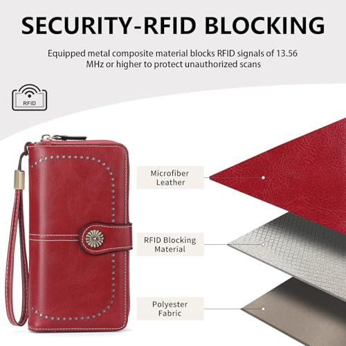 Wallets for Women Leather Credit Card Holder with RFID Blocking Holder Bifold Wristlet Clutch Wallet 2