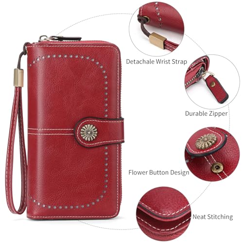 Wallets for Women Leather Credit Card Holder with RFID Blocking Holder Bifold Wristlet Clutch Wallet 1