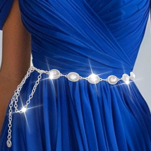 More information about COSYDAYS Silver Rhinestone Chain Belts Sparkly Crystal Dress Belt Fashion Waist Body Accessories for Women
