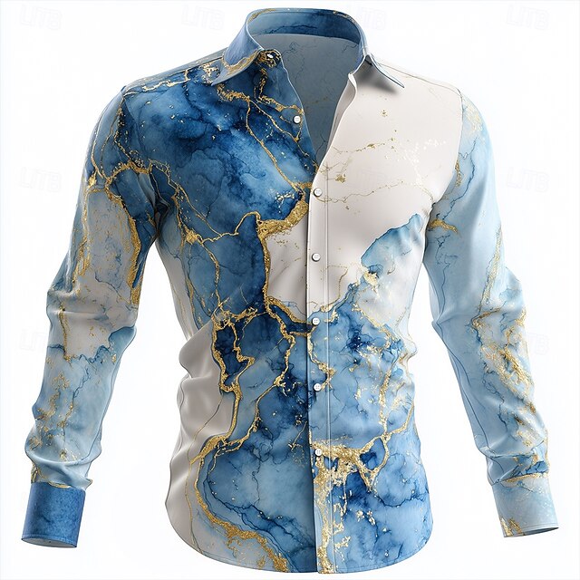 $25.99 - Men's Marble Abstract Liquid Art Shirt Button Up Shirt Long Sleeve Fashion Casual Outdoor Dailywear Spring Fall Turndown 3D Print Linen Like Shirt Blue Purple 2025. Shop for cheap Geometric Pattern online? Buy at lightinthebox.com on sale today!
