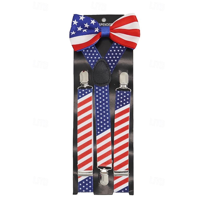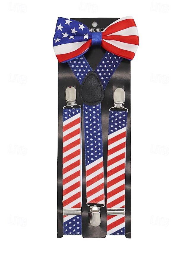 $11.99 - Men's American Flag Suspenders and Bow Tie Set – Patriotic Adjustable Y-Back Braces with Clips, Stars and Stripes Design, Independence Day 4th of July Outfit Accessory 2025. Shop for cheap Men's Ties & Bow Ties online? Buy at lightinthebox.com on sale today!
