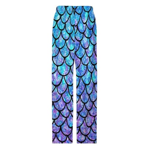 Bagea-Ka Ombre Mermaid Teal Purple Pattern Mens Pajama Pants Lounge Sleep Long Pants with Pocket Loungewear 5