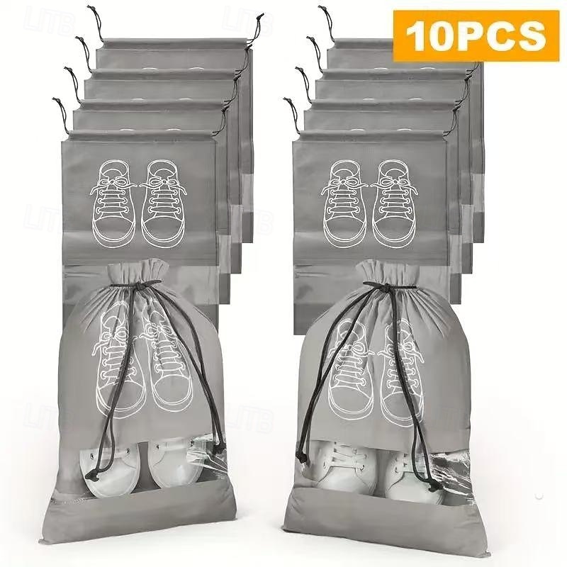$7.99 - 10-Pack Travel Shoe Storage Bags, Non-Woven Dustproof Shoe Organizers with Drawstring Closure, Transparent Window and White Shoe Print Design 2025. Shop for cheap Storage & Organization online? Buy at lightinthebox.com on sale today!