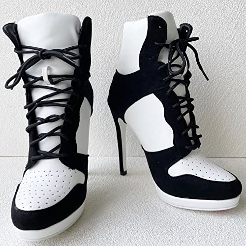 More information about Frankie Hsu Stiletto Sport Basketball High Heeled Ankle Boots, Black Suede Classic White Sneaker Bootie, Big Size Fashion Designer Shoes For Women Men