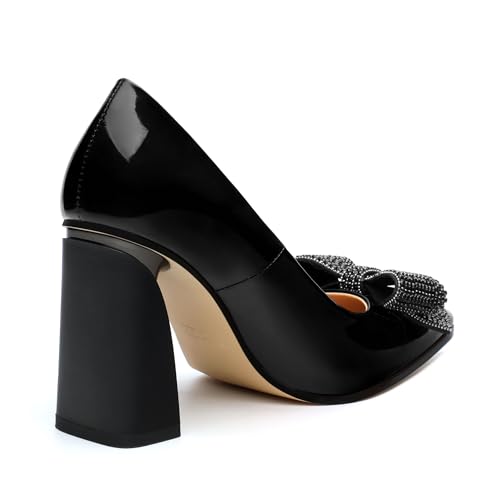 More information about Womens Chunky Block High Heels Patent Closed Pointed Toe Bow Pumps Slip on Heels Wedding Party Dress Shoes 3.5IN Black Patent Size 10