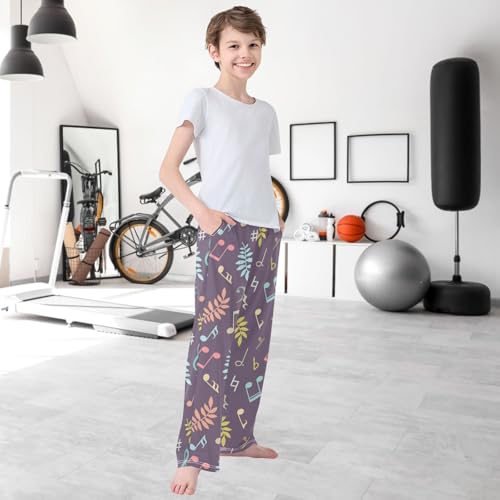 Boy's Pants Music Notes and Leaf Jogger Pants Elastic Waist Long Bottoms Trousers with Pockets 6-14 Years 5
